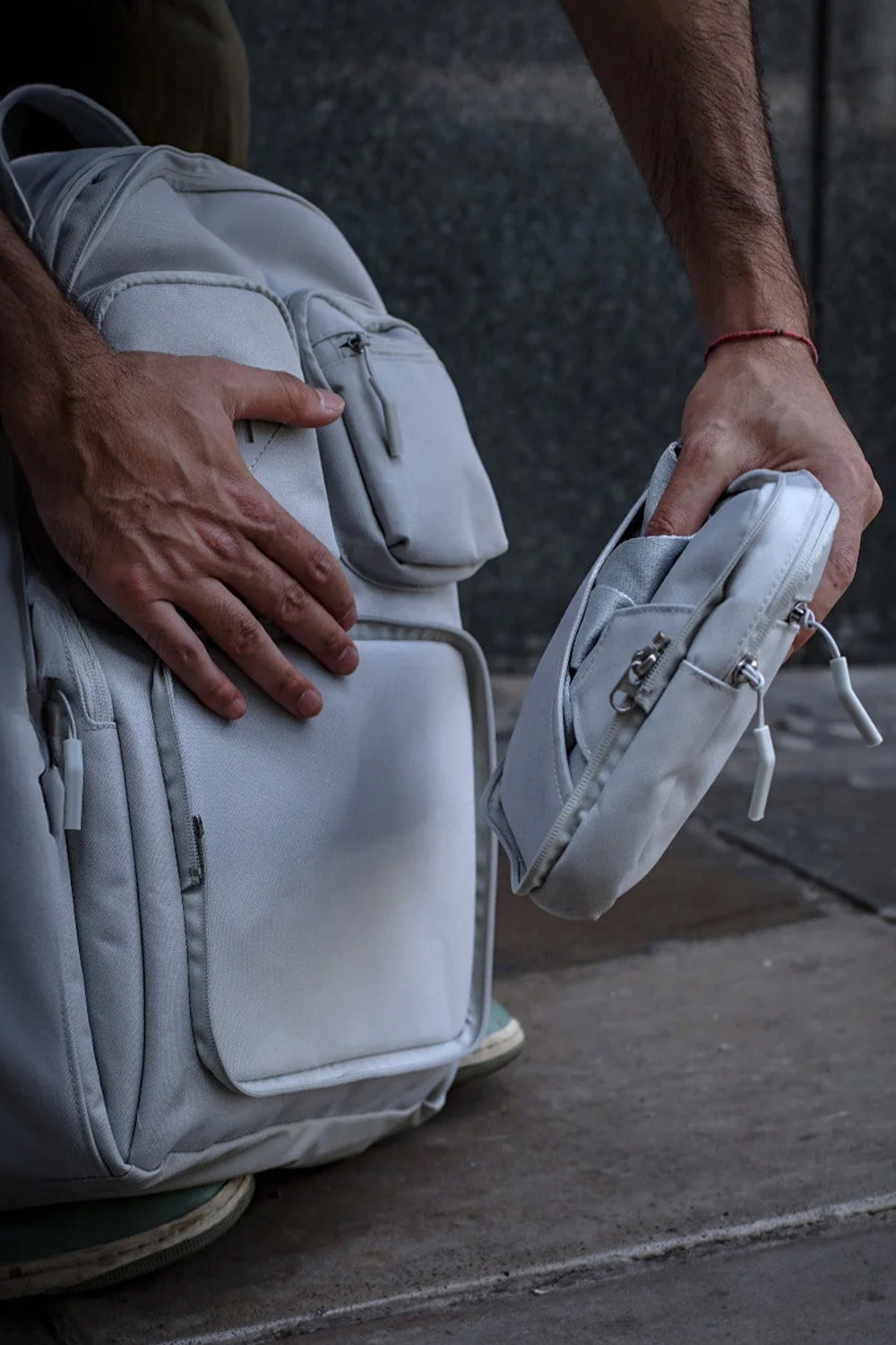 Removable front pocket transforms into a sleek crossbody bag
